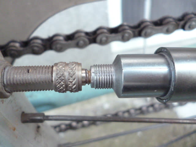 そのコメントを見ながら、『そうだ、車のエアゲージは気圧が低くなければ使えないのだが、米式バルブに合う。もしかして・・・』